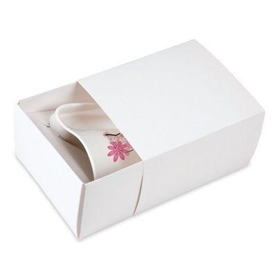 Elegant snow-white packaging with perfectly matched insert that stabilizes mug.