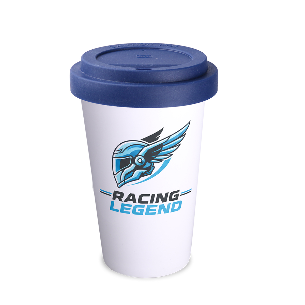 A poreclain advertising mug with polymer cover, which provides protection from accidental spillage. The model is dedicated to active persons and traveling enthusiasts. Owing to the unique internal structure of double porcelain walls, this mug allows for improved thermal insulation. The cover is available in 8 colors: white, orange, red, green, navy blue, brown, black and gray.