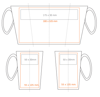 Print on the handle (70x10 mm) Print on the inside (50x10 mm) Print on the bottom outside (ø35 mm) Gold print Silver print Hand Made - rim painting Personal print |