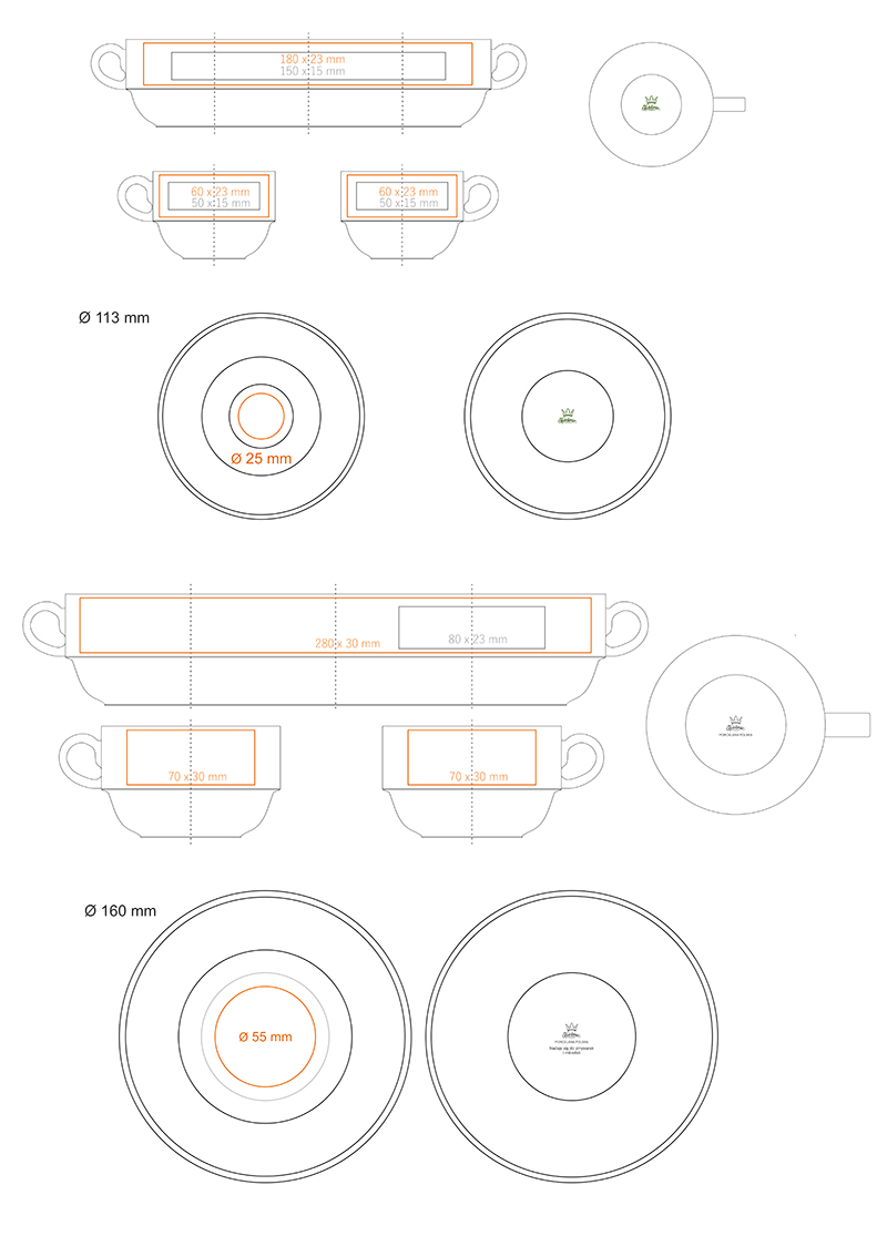 Available adornment technologies for BISTRO SET: * (80 / 260 ml)